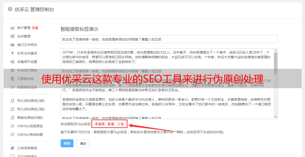 使用优采云这款专业的SEO工具来进行伪原创处理