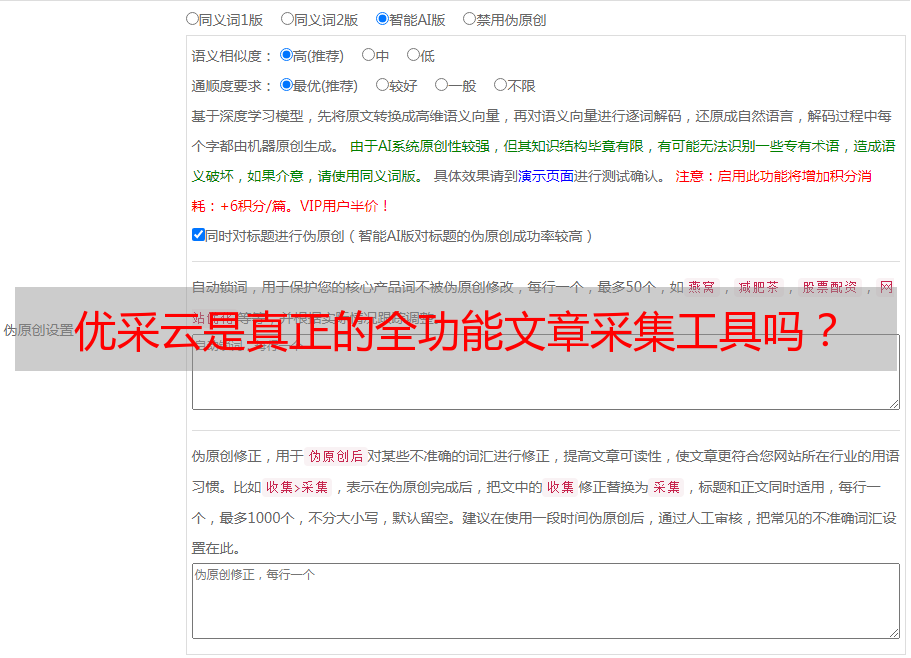 总之,优采云是一款真正的全功能文章采集工具。除了文章采集外,它还可以帮助用户快速准确地获得各种信息和数据。而且最好的是:它是完全免费的!如果你也想尝试一下优采云带来的强大功能,不妨来www.ucaiyun.com试试吧!
