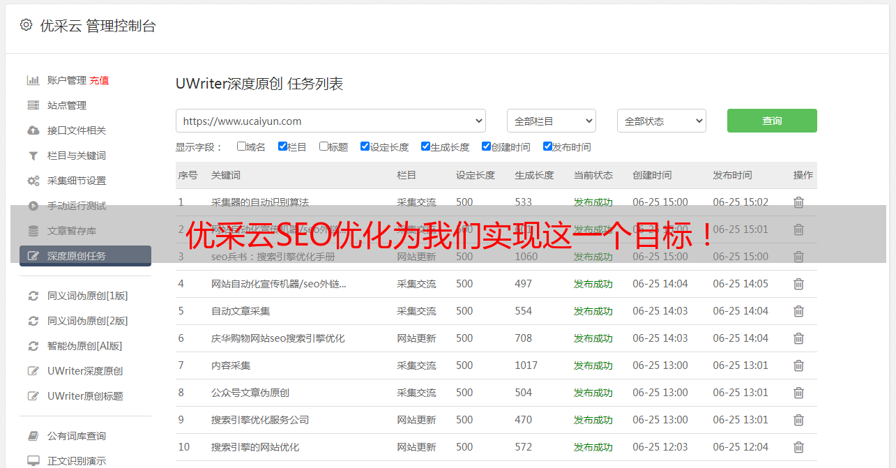 总之,随着当今互联网时代对SEO伪原创视频要求愈发严格,使用优采云SEO优化来实行SEO伪原创视频是一个不可多得而又十分有效、方便易行的方法。如果你想要快速、准确地实行一个真正有效而且独特的SEO伪原创视频,不妨试试使用优采云SEO优化吧!如想了解更多关于该工具的信息,可前往www.ucaiyun.com 官方网站进行查看。