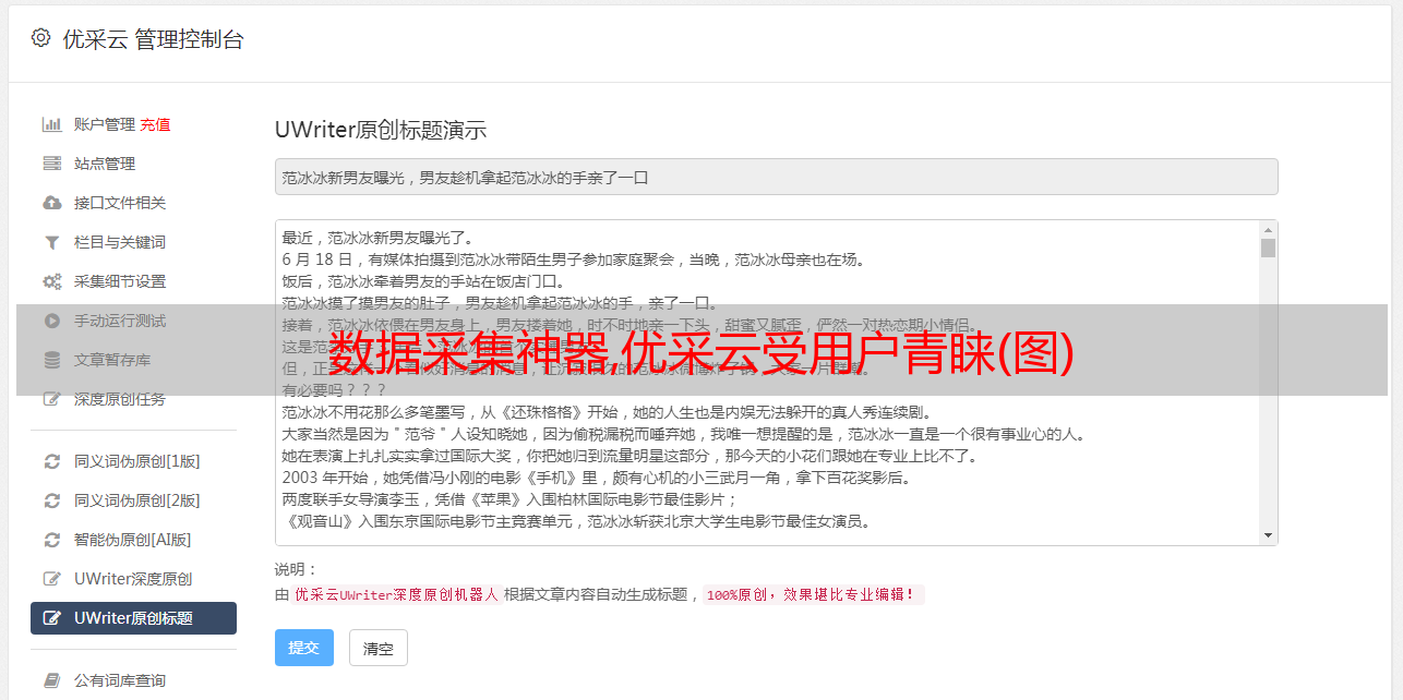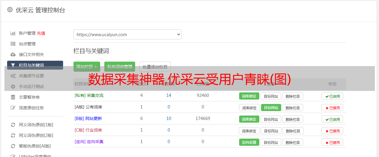 在众多的数据采集工具中,优采云是一款非常受用户青睐的数据采集神器。该工具不仅能够快速、准确地完成大批量数据采集,而且还能够根据用户需要对数据进行分类、过滤、存储、导出,从而节省用户大量时间。此外,优采云还可以帮助用户实现SEO优化,针对不同行业需要,实施有效的SEO优化方法,帮助用户将被采集内容及时上升到前端,从而达到有效增加用户流量的目的。