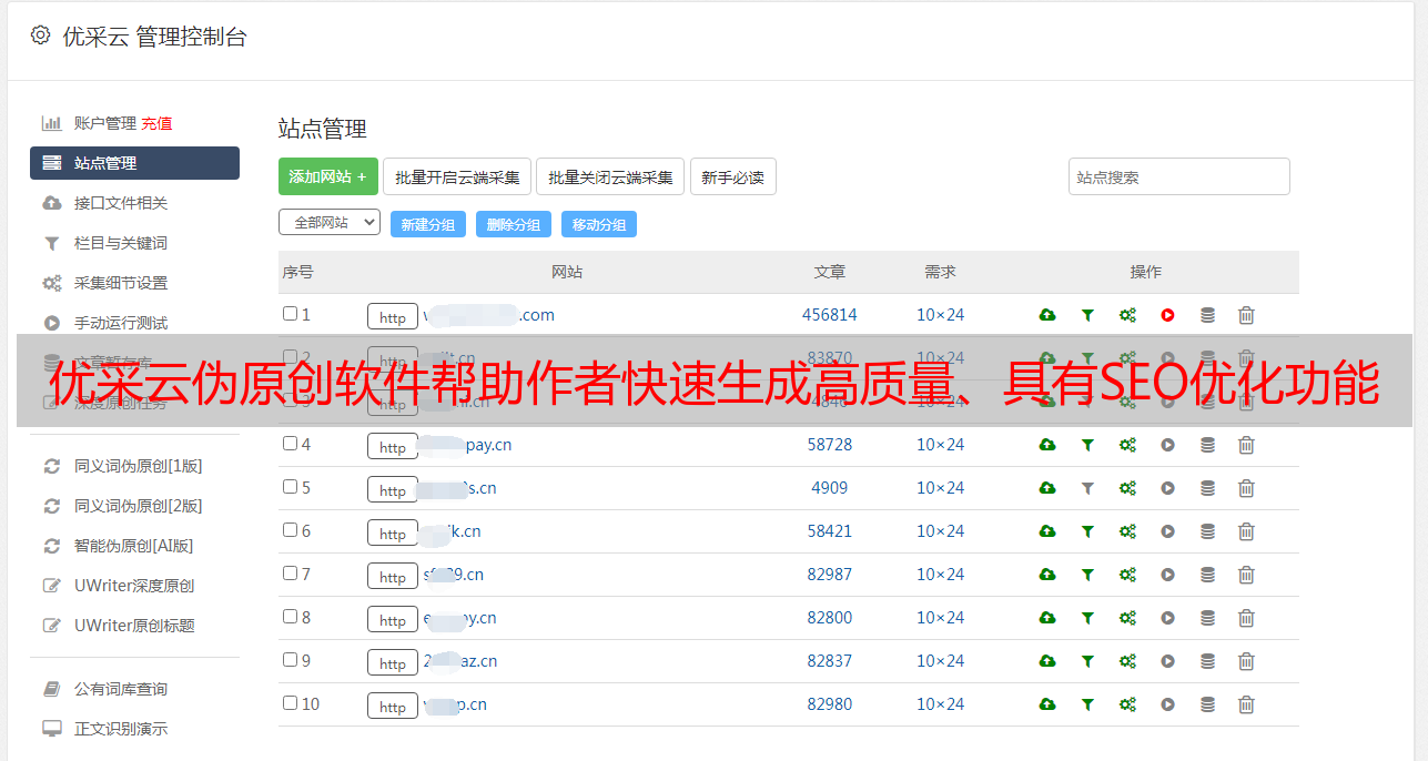 优采云伪原创软件帮助作者快速生成高质量、具有SEO优化功能