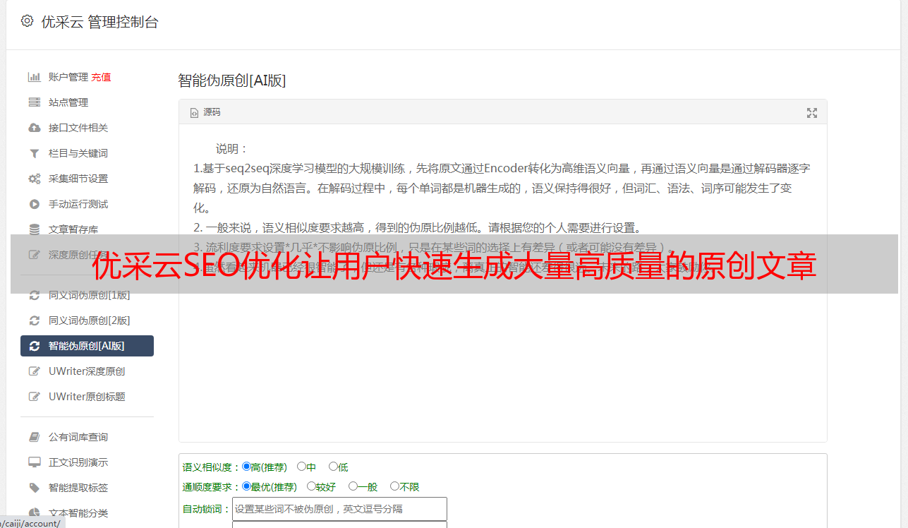 优采云SEO优化让用户快速生成大量高质量的原创文章