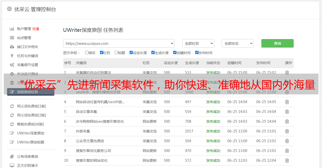 总之,优采云是一款强大而先进的新闻内容采集工具,能够帮助大家快速、准确地从*敏*感*词*海量数字化信息中获取所需要的信息。如想尝试该工具,请前往www.ucaiyun.com 浏览相关信息或者直接下载使用。