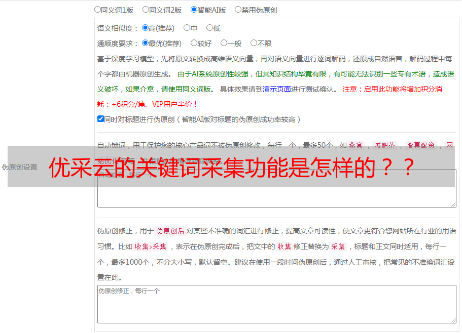 优采云的关键词采集功能可以帮助用户快速准确地搜集到相关信息,只需要填写关键词即可。它拥有多种过滤规则,可以根据用户需要进行定制化处理,从而提高文章采集效率。此外,优采云还有强大的SEO优化功能,可以根据用户的SEO要求对文章进行优化,有效地提升文章的搜索引擎友好性。