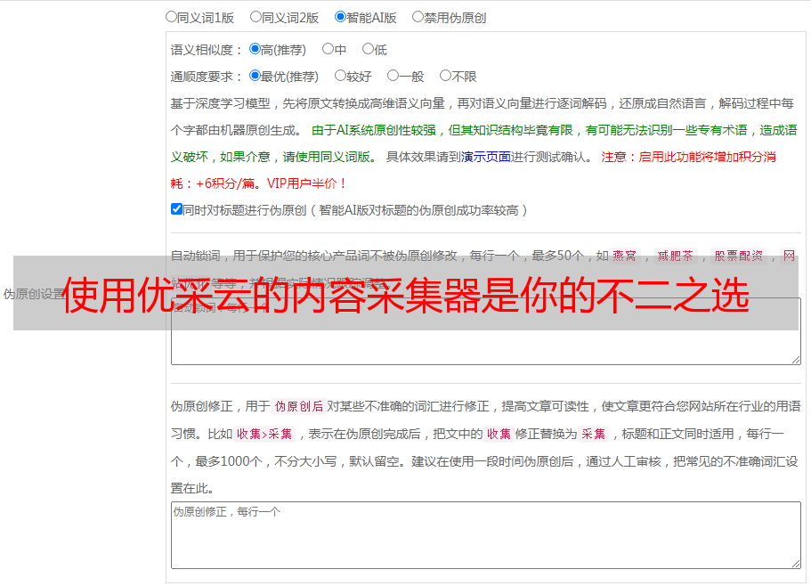 如今,优采云已成为非常流行的内容采集器之一,其拥有强大的数据库和SEO优化功能都得到广泛好评。如果你想要快速准确地获取大量数据并将其存储到本地电脑中,那么使用优采云就是你的不二之选。此外,你也可以通过它来对你的网站进行SEO优化,使之能够得到良好的搜索引擎评价。