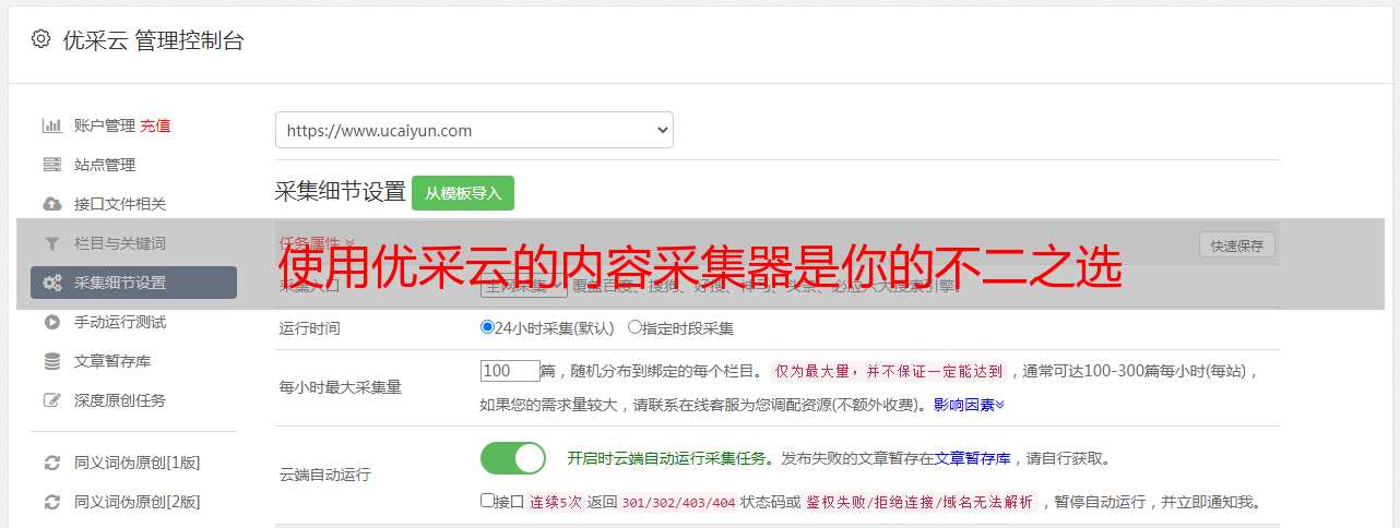 总之,如果你想要快速准确地获取大量信息并将其存储到本地电脑中,那么就不妨使用优采云这一强大的内容采集器了。它既能够帮助你快速准确地获取所需要的信息,也能帮你合理利用SEO来优化你的网页内容。想要了解详情,就快来浏览www.ucaiyun.com吧!