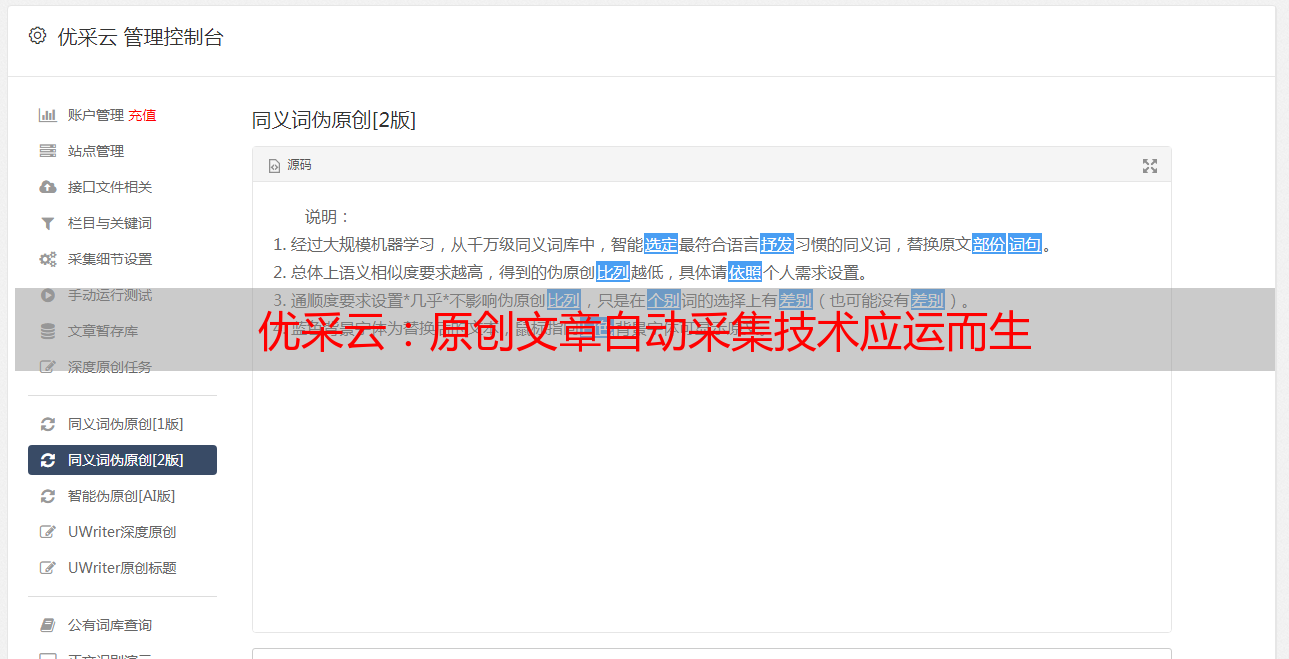 优采云是一款专业的原创文章自动采集软件,它可以帮助企业快速、高效地采集原创文章,免去手工搜索、整理、校对等流程。它可以根据用户设定的关键词设置,快速搜集相关内容,并智能生成高质量的原创文章内容。此外,优采云还可以帮助企业实现SEO优化,以便将文章内容排名越来越靠前,有效地吸引更多的用户流量。