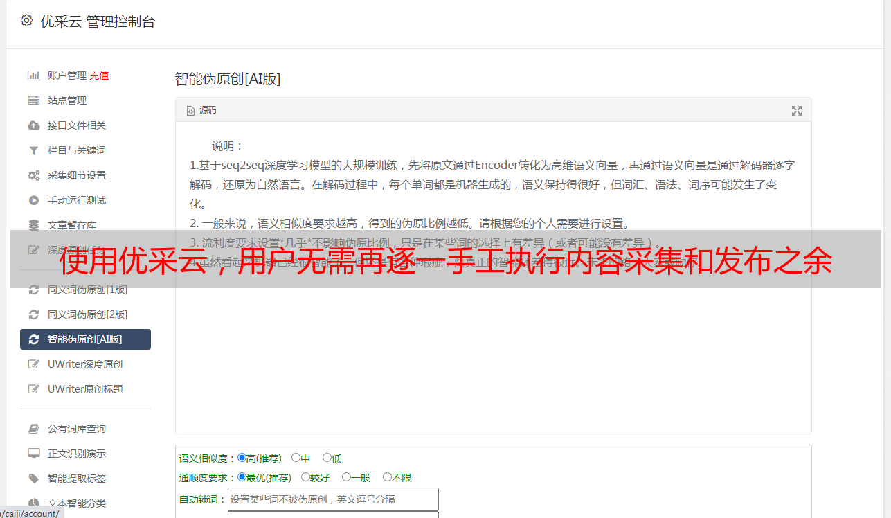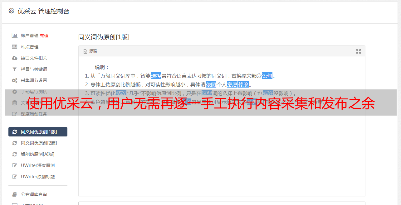 使用优采云,用户无需再逐一手工执行内容采集和发布之余也不必为内容格式耗费心思:优。