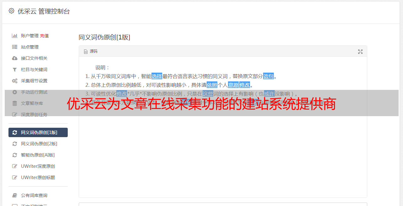总之,优采云是一款非常有用的文章在线采集功能的建站系统,它不仅具有强大的内容采集能力和SEO优化功能,而且还具有强大的数据分析能力。如有意使用该工具,请前往该工具官方网站www.ucaiyun.com 予以详情浏览。