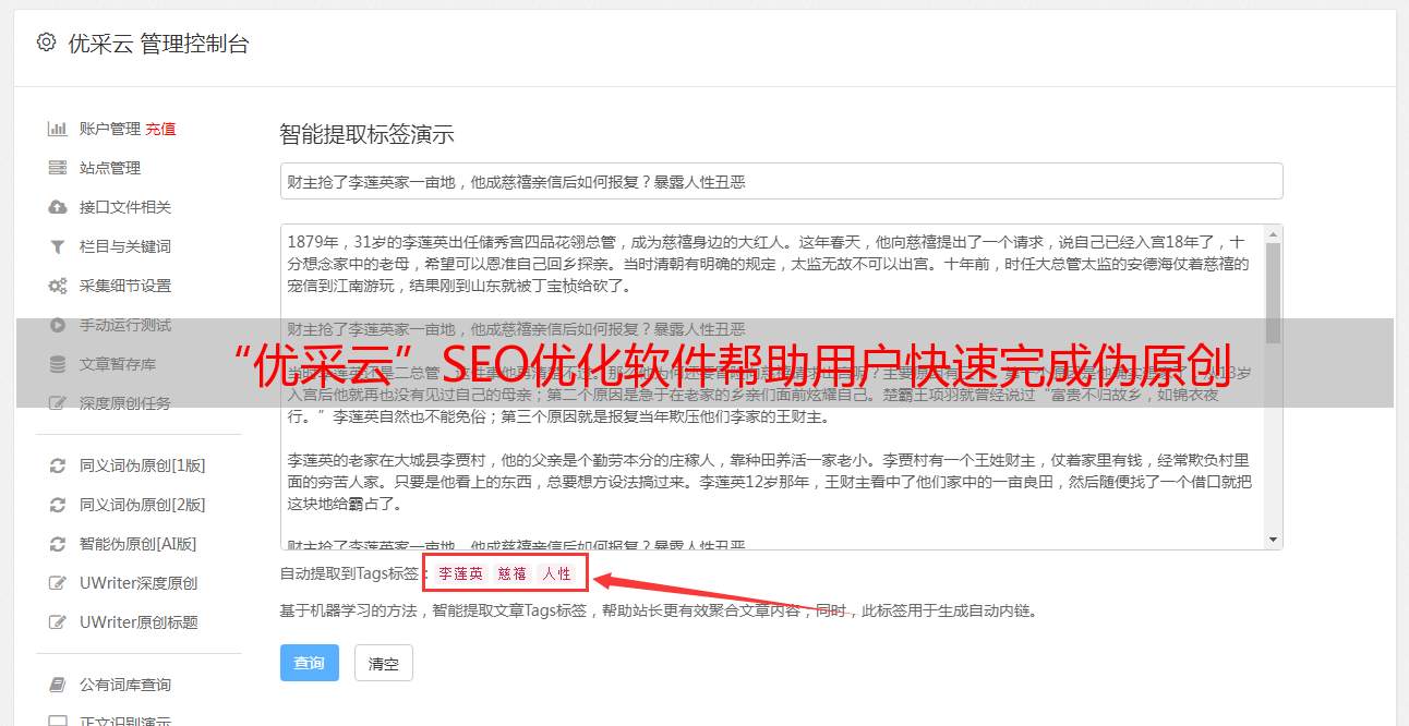 “优采云”SEO优化软件帮助用户快速完成伪原创
