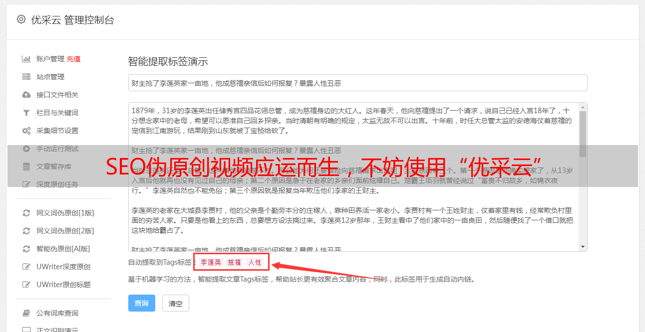 SEO伪原创视频应运而生,不妨使用“优采云”