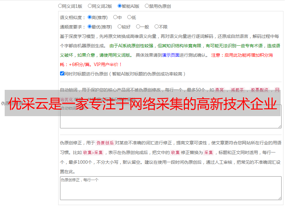 优采云是一家专注于网络采集、爬虫开发、SEO优化、大数据分析的高新技术企业,它的官网是www.ucaiyun.com。优采云以“开放、创新”为理念,专注于帮助企业打造互联网数字化平台。其独特的“无界采集”平台能够帮助用户实现无限的数据采集,从而实现大数据应用。