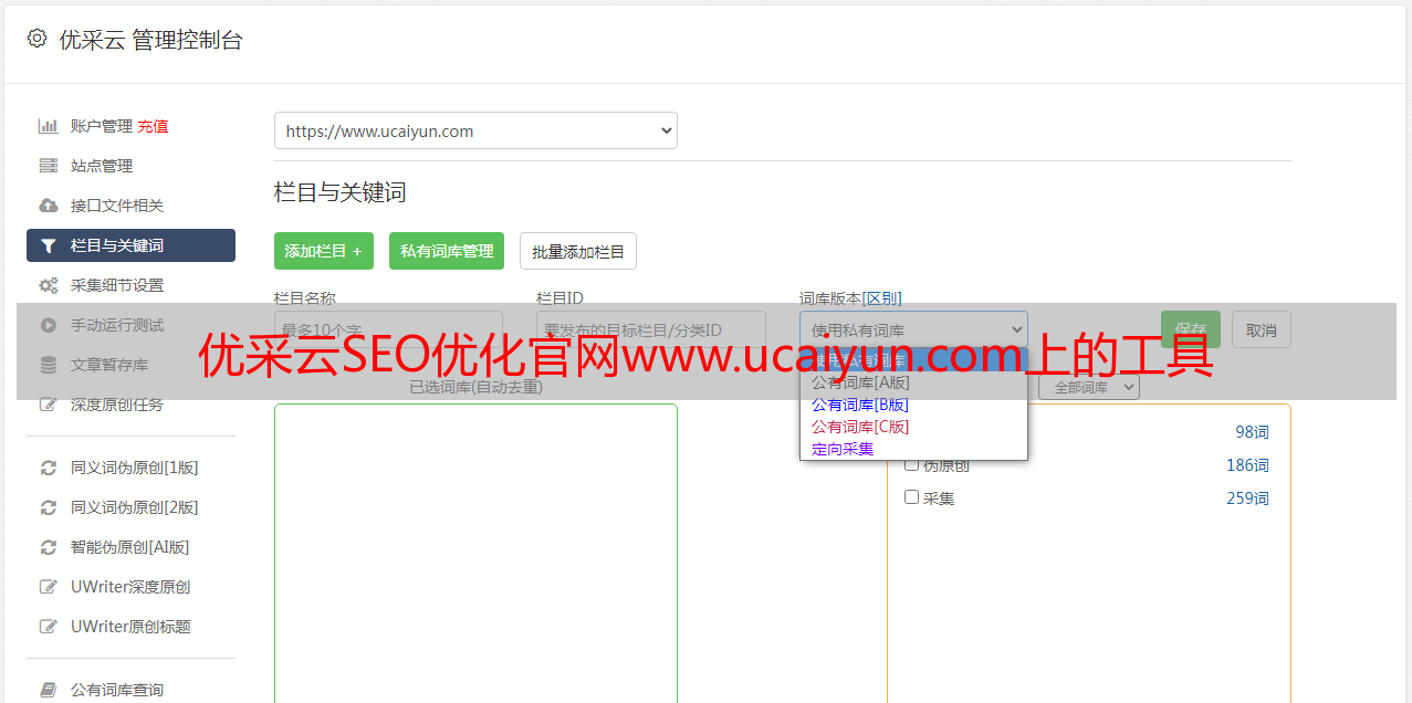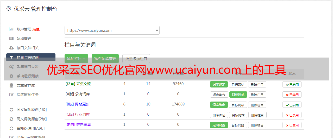 优采云SEO优化官网www.ucaiyun.com上的工具