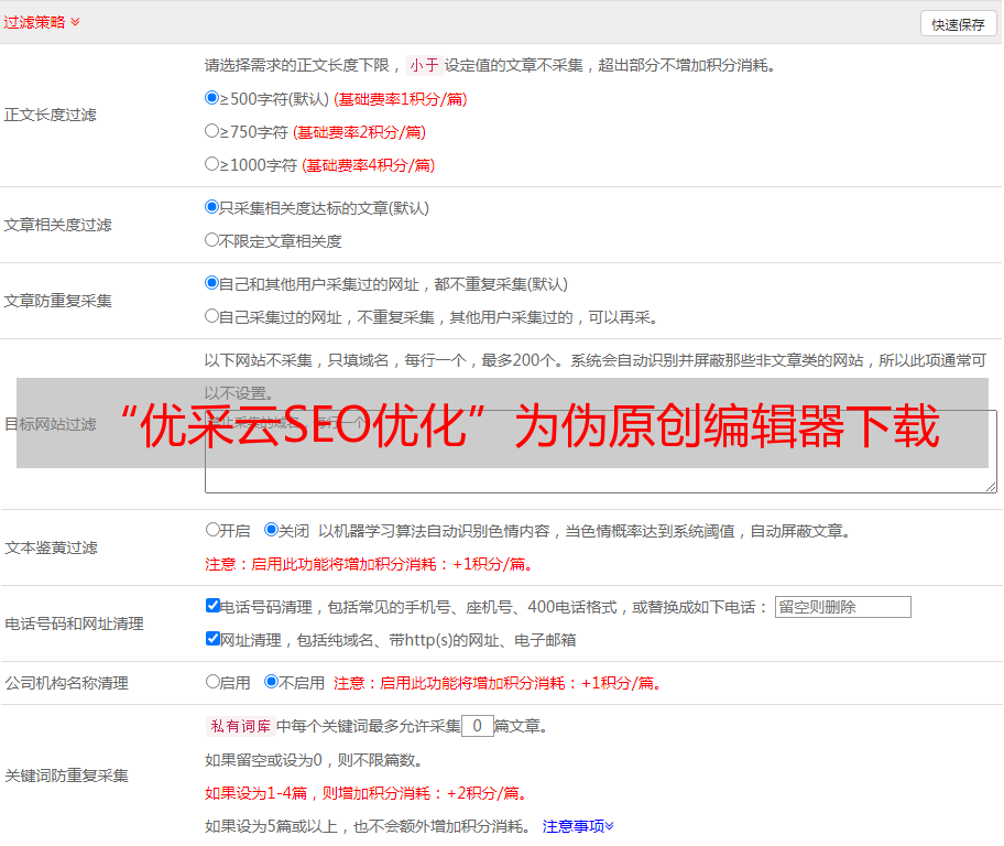 目前,“优采云SEO优化”是一款非常好用的伪原创编辑器。它具有强大的功能,可以快速、准确地生成高质量、高度相关性的文章。此外,它还具有语法检测、图片处理、图表生成、词语提取、文章分析功能,使用者可以根据需要选择不同的功能来实现不同的目标。而且它还具有强大的SEO功能,可以帮助用户将文章中心快速地显示在Google、Baidu或者Yahoo!上。