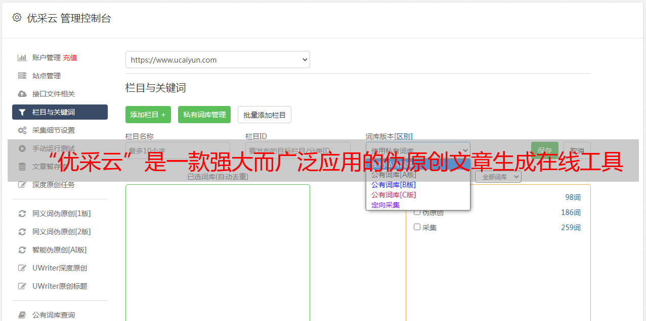 “优采云”是一款强大而广泛应用的伪原创文章生成在线工具