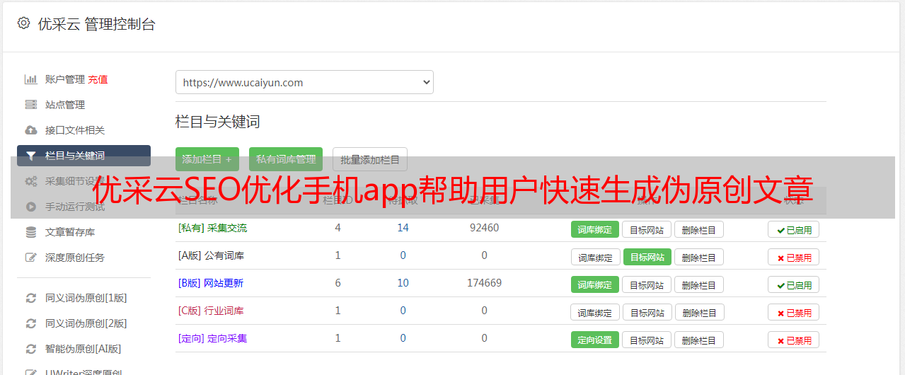 优采云SEO优化手机app帮助用户快速生成伪原创文章