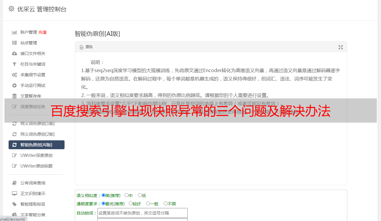 优采云 发布时间: 2021-06-05 20:04百度搜索引擎出现快照异常的三个问题及解决办法