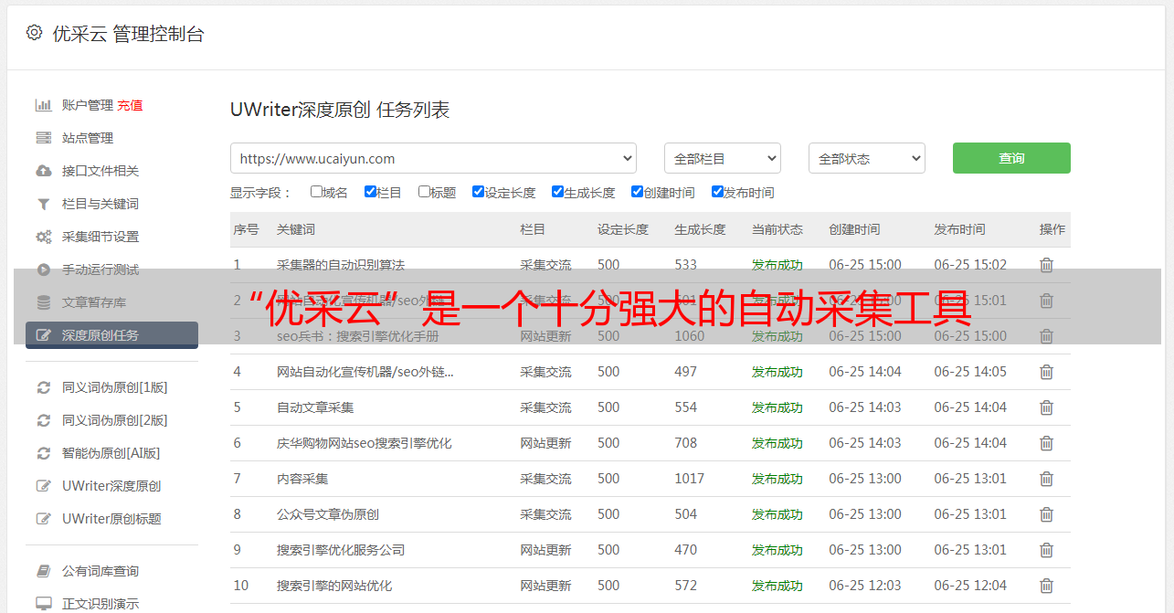 优采云作为一家专注于商业数据采集和处理的领先企业,开发了一款非常强大而又实用的自动采集工具——“优采云”。它是一款可以快速、精准地搜索和收集数据的软件,能够帮助用户根据各种条件进行采集分析、数据处理和存储。