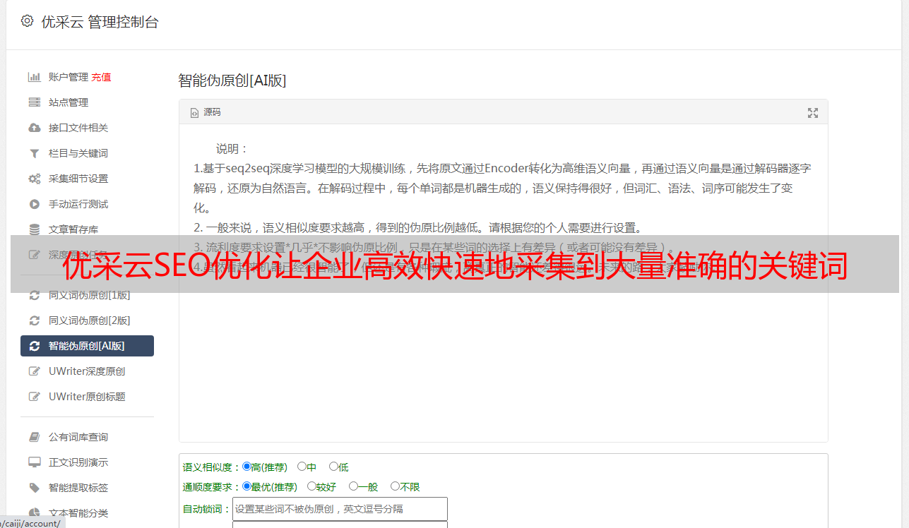 优采云SEO优化让企业高效快速地采集到大量准确的关键词
