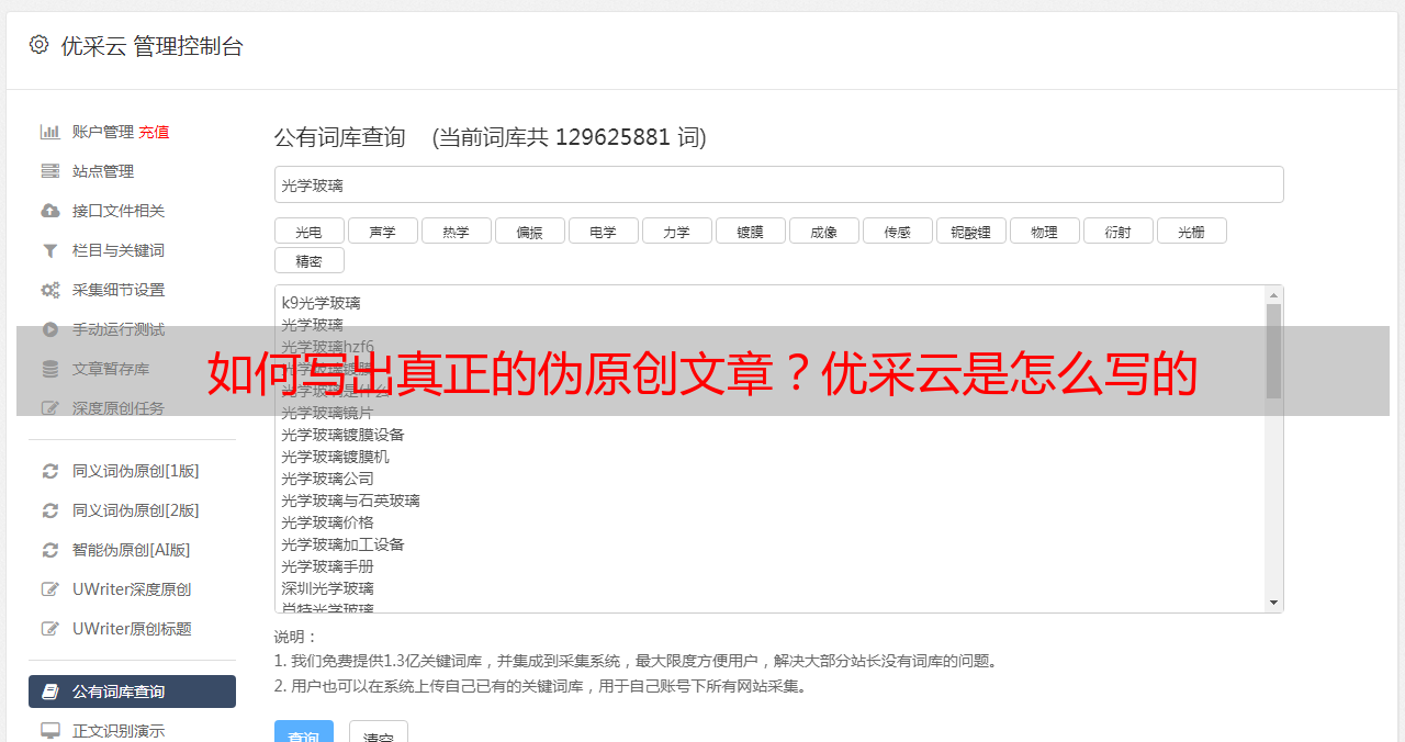 总之,如何写出真正的伪原创文章并不难理解:要注意使用不同的语气、表述方式和文字风格;要尽量避免使用相同的句子或语句;要考虑使用SEO优化工具来帮助你快速生成不同版本的伪原创文章;并要遵循一些基本原则来保证生成出来的文章能够看上去真正独特、有说服力。如此才能真正实现SEO优化效果。如果想要生成不同版本独特、有说服力、SEO 优化效果出众的伪原创文章就应该考虑使用“优采云”这样专业的SEO 优化工具来帮助你快速生成不同版本的内容,其官方网址是www.ucaiyun.