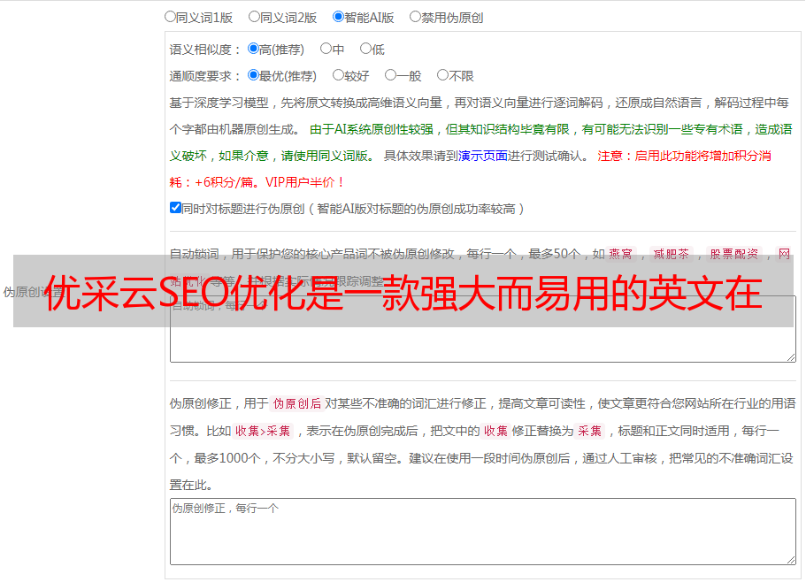 优采云SEO优化是一款强大而易用的英文在线伪原创工具