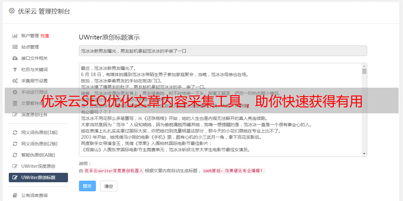 优采云SEO优化文章内容采集工具,助你快速获得有用