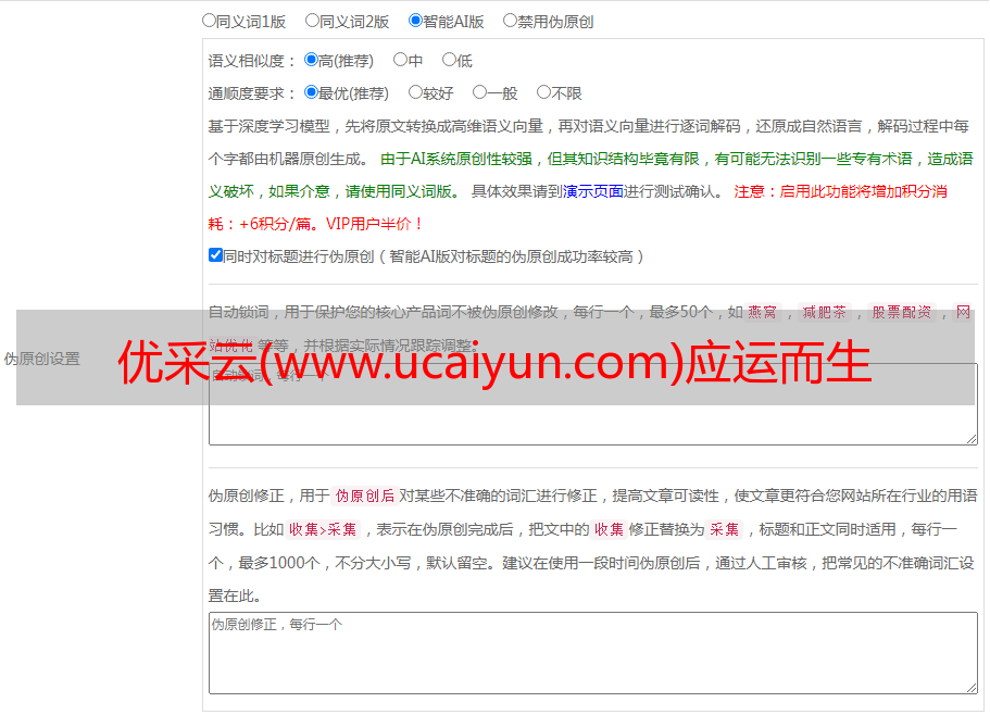 在这样的情况下,优采云(www.ucaiyun.com)就应运而生了。优采云是一款非常出色的自媒体爆文伪原创软件,它可以帮助作者快速、高效地实现伪原创目标。它不仅能够快速地将已有内容重新整理成全新的内容,而且还能够对内容进行SEO优化,使得文章能够更好地被搜索引擎找到。
