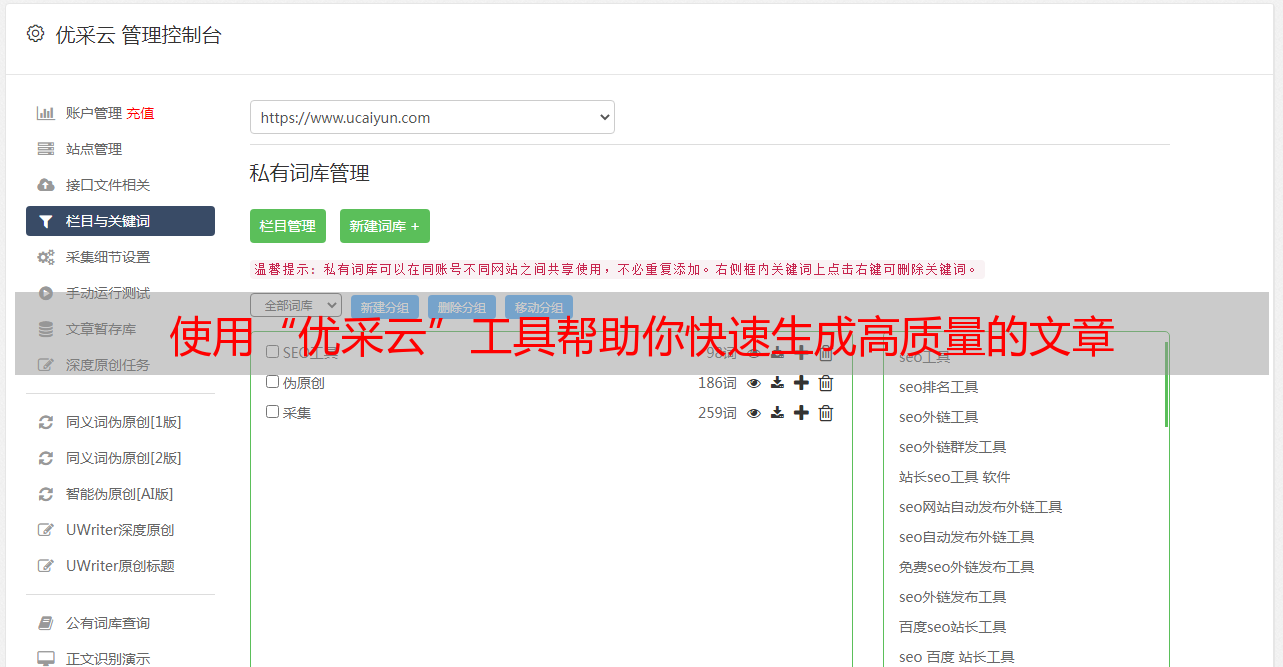 使用“优采云”工具帮助你快速生成高质量的文章