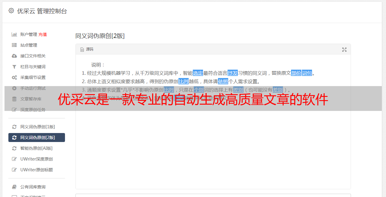 优采云是一款专业的自动生成高质量文章的软件
