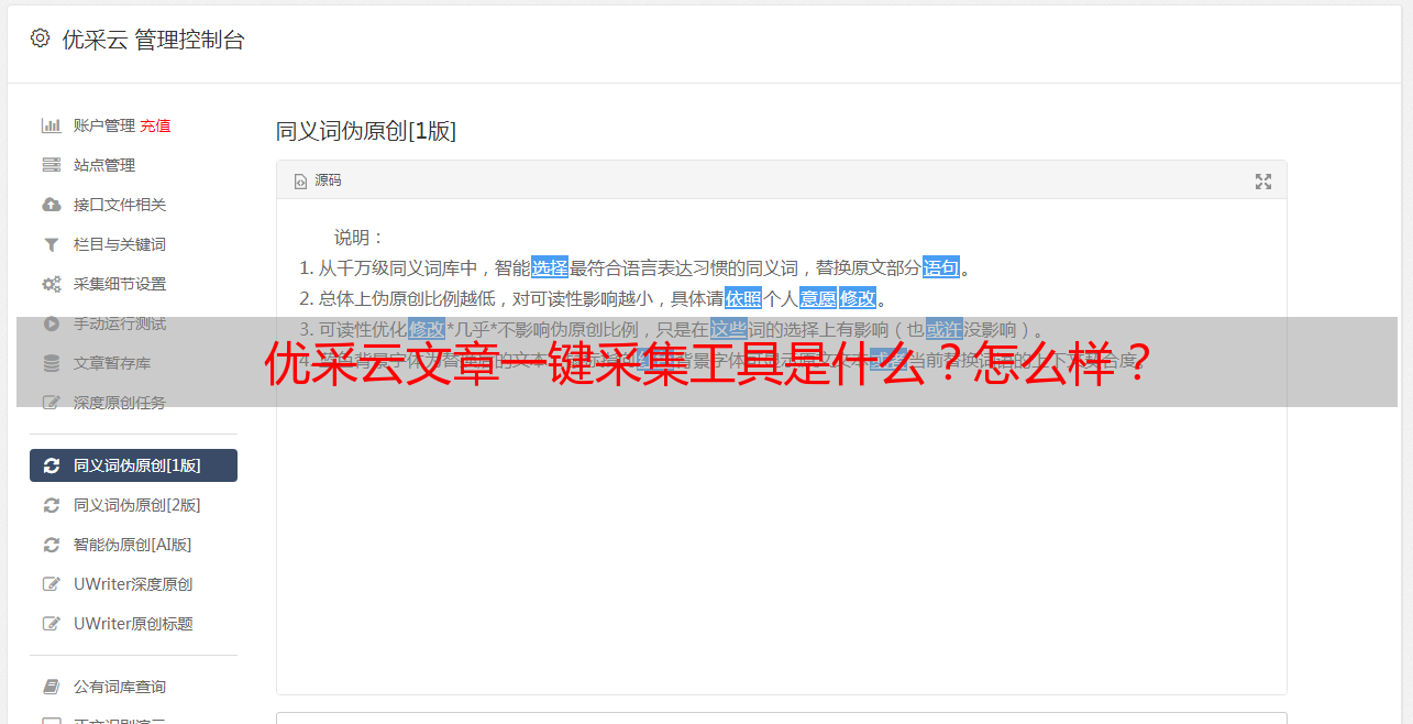 优采云文章一键采集工具不仅能够有效地帮助用户快速地获取到所需要的信息,而且还能够帮助用户将所采集内容进行SEO优化,使之能够在搜索引擎中获得更好的排名。因此,优采云文章一键采集工具是电子商务、新闻出版、学术研究等不同行业的必备神器。