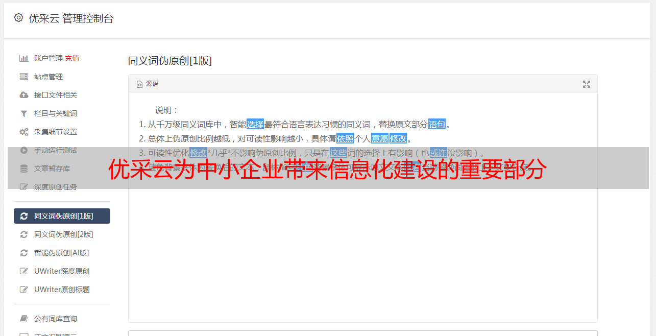 优采云的核心功能是以关键词为基础,实时从各大门户、新闻、博客、微博、贴吧、电商平台等多方来源进行数据采集,并可准确识别文章内容中的关键词,将信息采集到优采云平台进行存储和分析。优采云还可以帮助企业进行SEO优化,如根据关键词制定SEO内容规划、监测站外关键词权重、监测站内权重等,以便帮助企业选出最佳的SEO关键词。