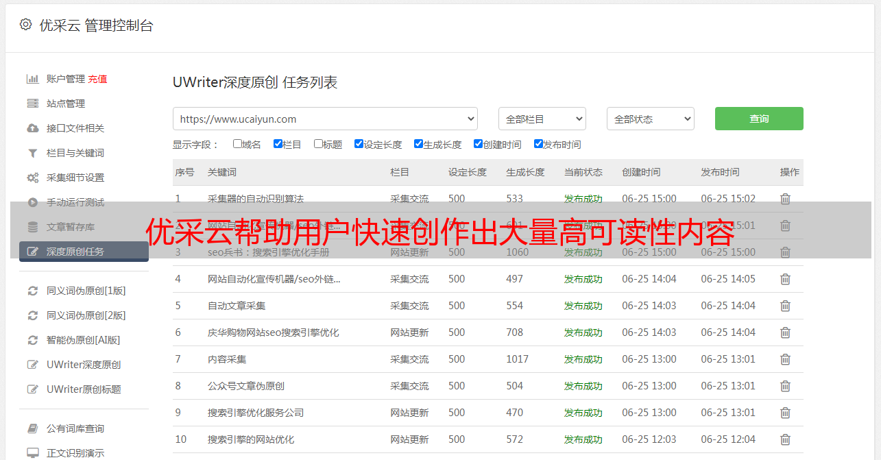 如果你想要尝试使用优釅云来创作出具有高可读性和SEO 优化效果的内容,你可以前往www.ucaiyun.com 的官网进行注册使用。