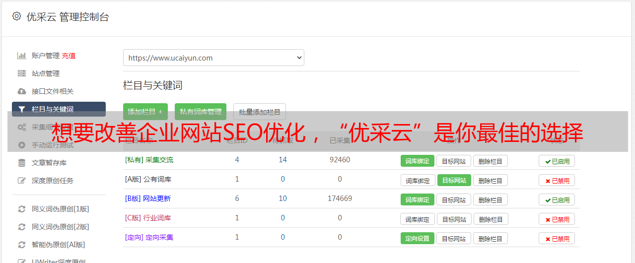如果你想要改善企业网站SEO优化,那么“优采云”是你最佳的选择。它是一款强大的文章采集软件,可以帮助用户从海量新闻信息中定向采集文章内容,并支持根据不同主题快速生成原创文章。它的特色在于采集质量高、效率快、使用方便、性价比高。