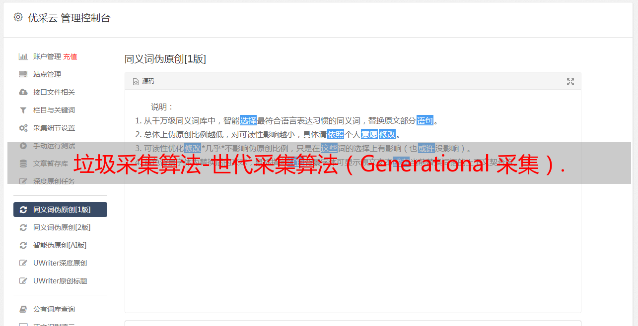 优采云 发布时间: 2020-08-07 18:22当前,商用虚拟机的垃圾采集采用“ Generational 采集”算法. 该算法没有任何新思想,但是会根据对象的生命周期将内存分为几个块. 通常,Java堆分为新一代和老一代,因此可以根据每一代的特性采用最合适的采集算法. 在新一代中,每次垃圾回收都会发现大量对象死亡,只有少数能够生存,然后选择复制算法,并且只需少量的生存对象复制成本就可以完成复制算法. 在晚年,由于对象的存活率很高并且没有多余的空间来保证其分配,因此有必要使用“标记清除”或“标记排序”算法进行回收.