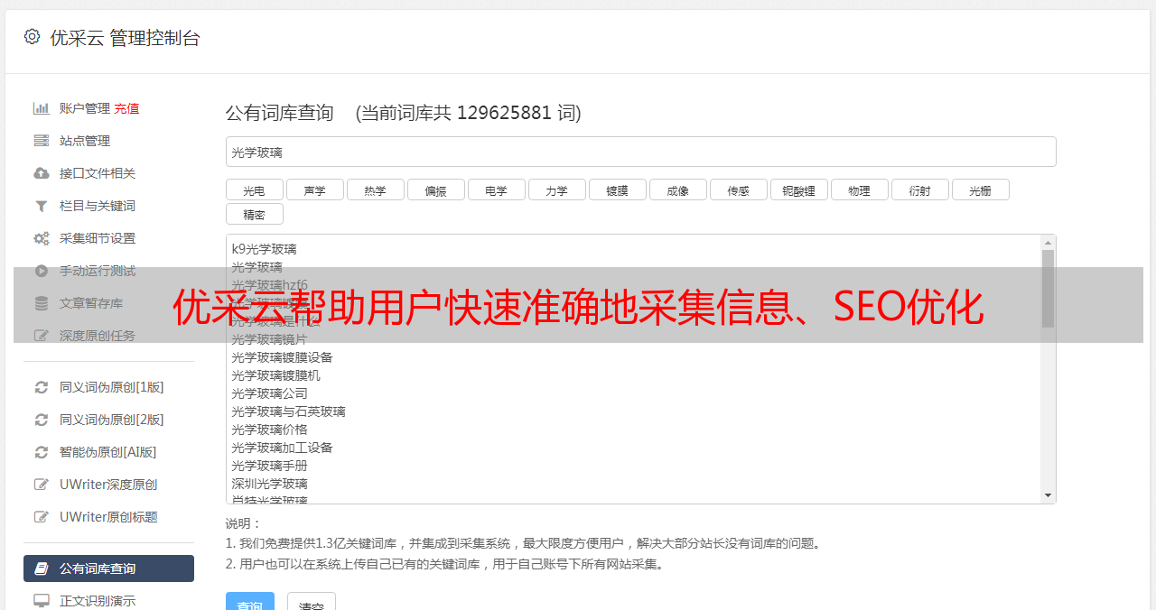 优采云帮助用户快速准确地采集信息、SEO优化