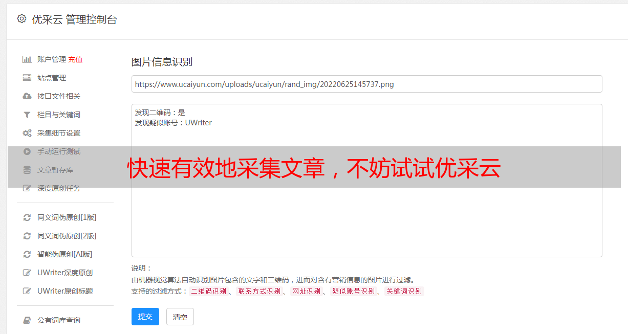 总之,优采云是一款非常好用的文章采集工具。它不仅可以帮助用户快速采集各种文章,而且还可以根据用户需要对文章进行SEO优化。如果你想要快速有效地采集文章,不妨试试优采云吧!它的官网是www.ucaiyun.com 。