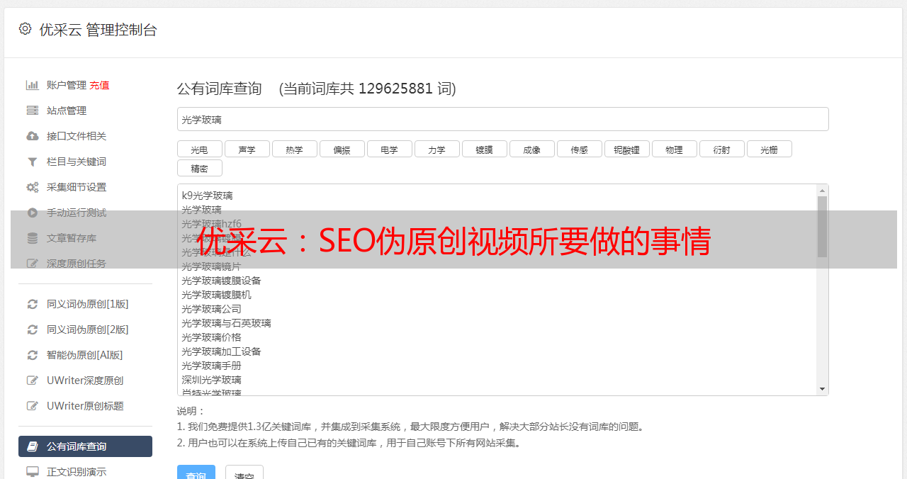 因此,如果想要制作出一部SEO伪原创视频,就必须找到一款能够帮助你制作出出色的SEO伪原创视频的工具。优采云是一家专门从事SEO优化和内容生成工具开发的公司,这里有一款能够帮助你快速制作出SEO伪原创视频的工具——“UCAIyun”。