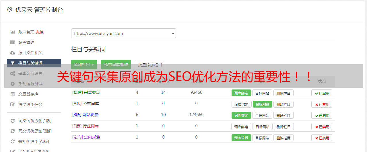 优采云 发布时间: 2023-01-26 08:34如今,越来越多的企业都在努力提升自己的网上排名,以便获得更多流量。随着搜索引擎优化(SEO)的发展,关键句采集原创成为了一种有效的SEO优化方法。优采云是一款强大的关键句采集原创工具,它能够帮助企业在搜索引擎中获得更高的排名。