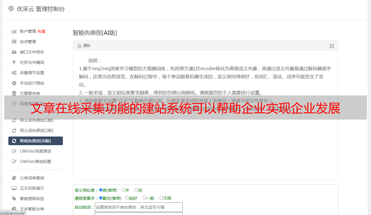 文章在线采集功能的建站系统可以帮助企业实现企业发展