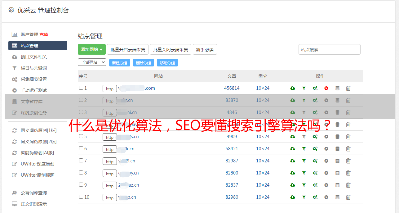 ⑩优采云算法:主要可以针对中文新闻源的销售情况和软文的情况进行整改。