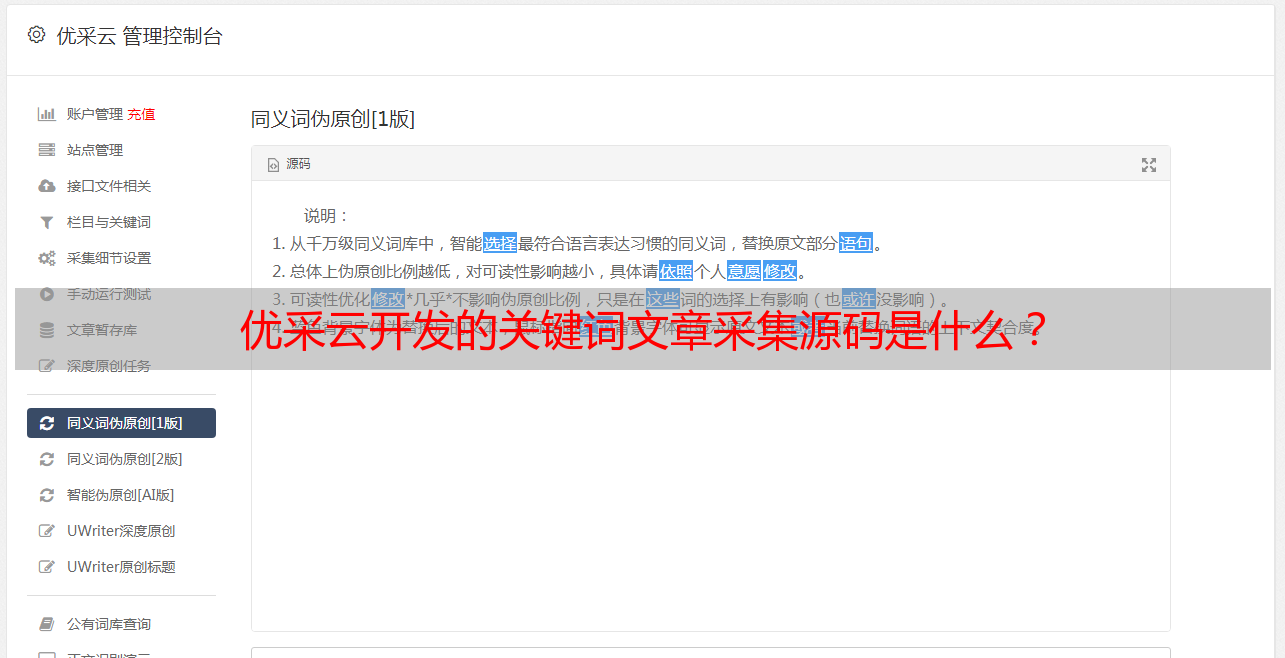 优采云 发布时间: 2023-01-26 14:33关键词文章采集源码是一种用于从网络上自动收集关键词相关文章的软件。它可以帮助用户快速地收集有用的信息,提升网站的SEO优化效果,并节省大量时间。