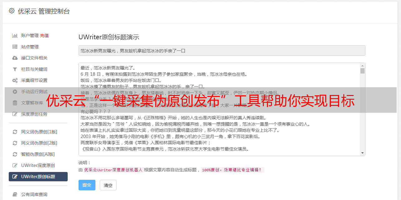 优采云“一键采集伪原创发布”工具帮助你实现目标