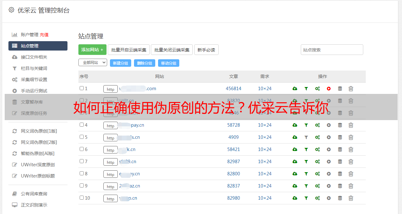 总之,随着SEO已成为当前重要的市场营销手段之一,如何正确使用伪原创成为当前一个重要话题。作为一名SEOer应该明白如何正确使用此方法来达到最好的效果。“优采云”是一款SEO工具,可以帮助你快速有效地实现内容优化,保证文章内容的真实性和准确性并节省时间、成本和人力成本。