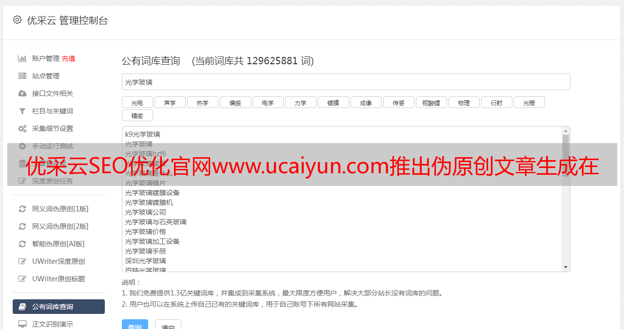 优采云SEO优化官网www.ucaiyun.com推出伪原创文章生成在线软件