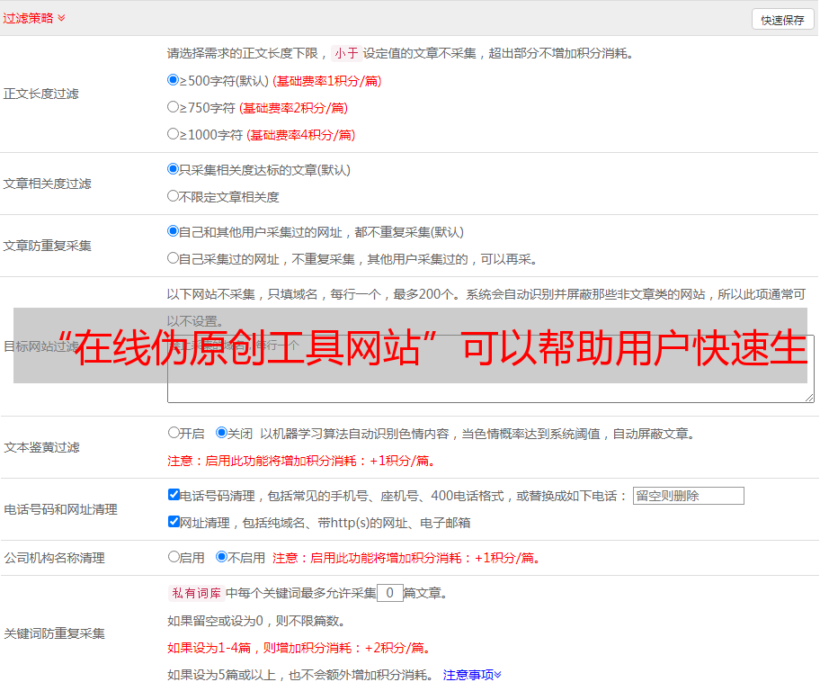 “在线伪原创工具网站”可以帮助用户快速生成高质量文章