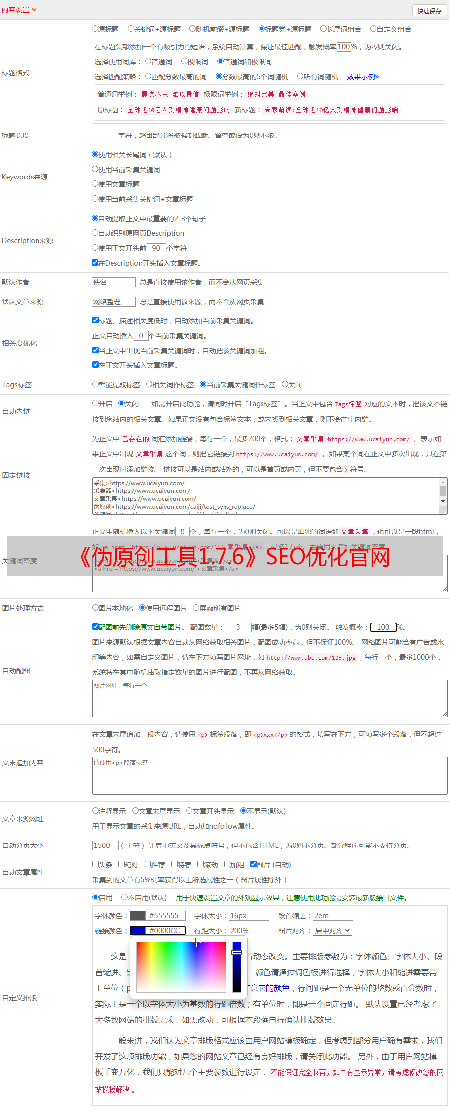 优采云 发布时间: 2023-01-28 01:27《伪原创工具1.7.6》是由优采云SEO优化推出的一款专业的文章伪原创软件,它可以让原创文章获得良好的搜索引擎优化效果,有效地提升网站的流量。