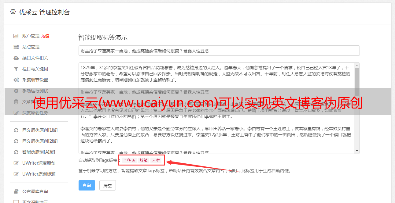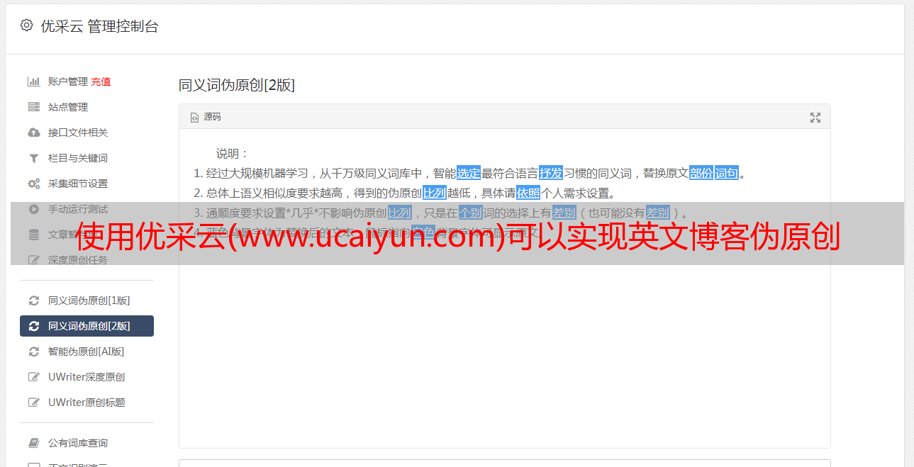 使用优采云(www.ucaiyun.com)可以实现英文博客伪原创