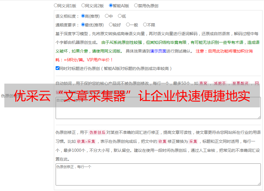 此外,优采云还为“文章采集器”内置了SEO优化功能,只要在采集时添加相应的关键词即可使文章具备SEO优化能力。因此,使用该软件采集的文章不但能够有效地帮助企业实现信息采集目标,而且能够有效地帮助企业将内容引流到相应的平台上去。