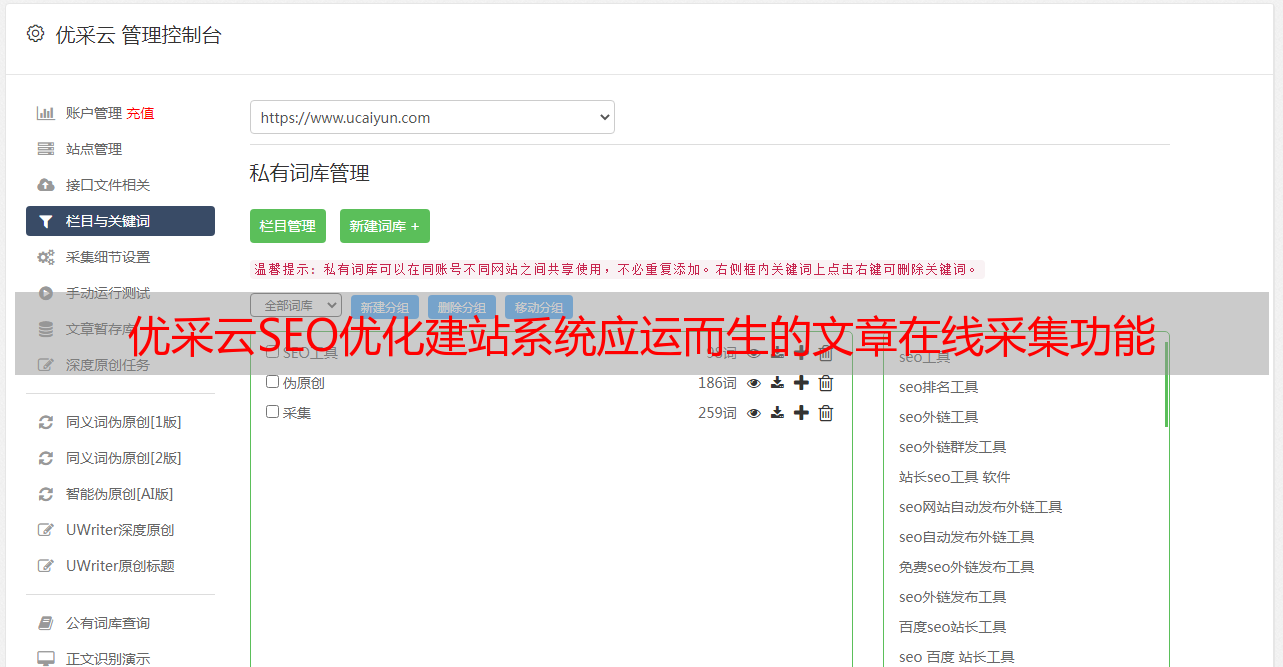 优采云SEO优化建站系统应运而生的文章在线采集功能