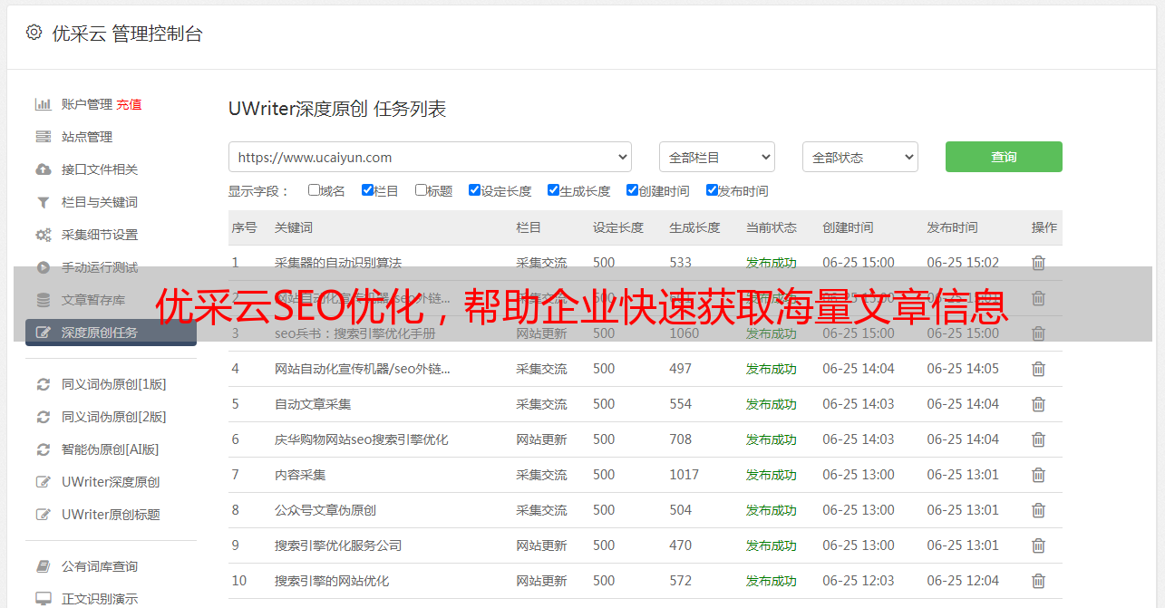 优采云SEO优化,帮助企业快速获取海量文章信息